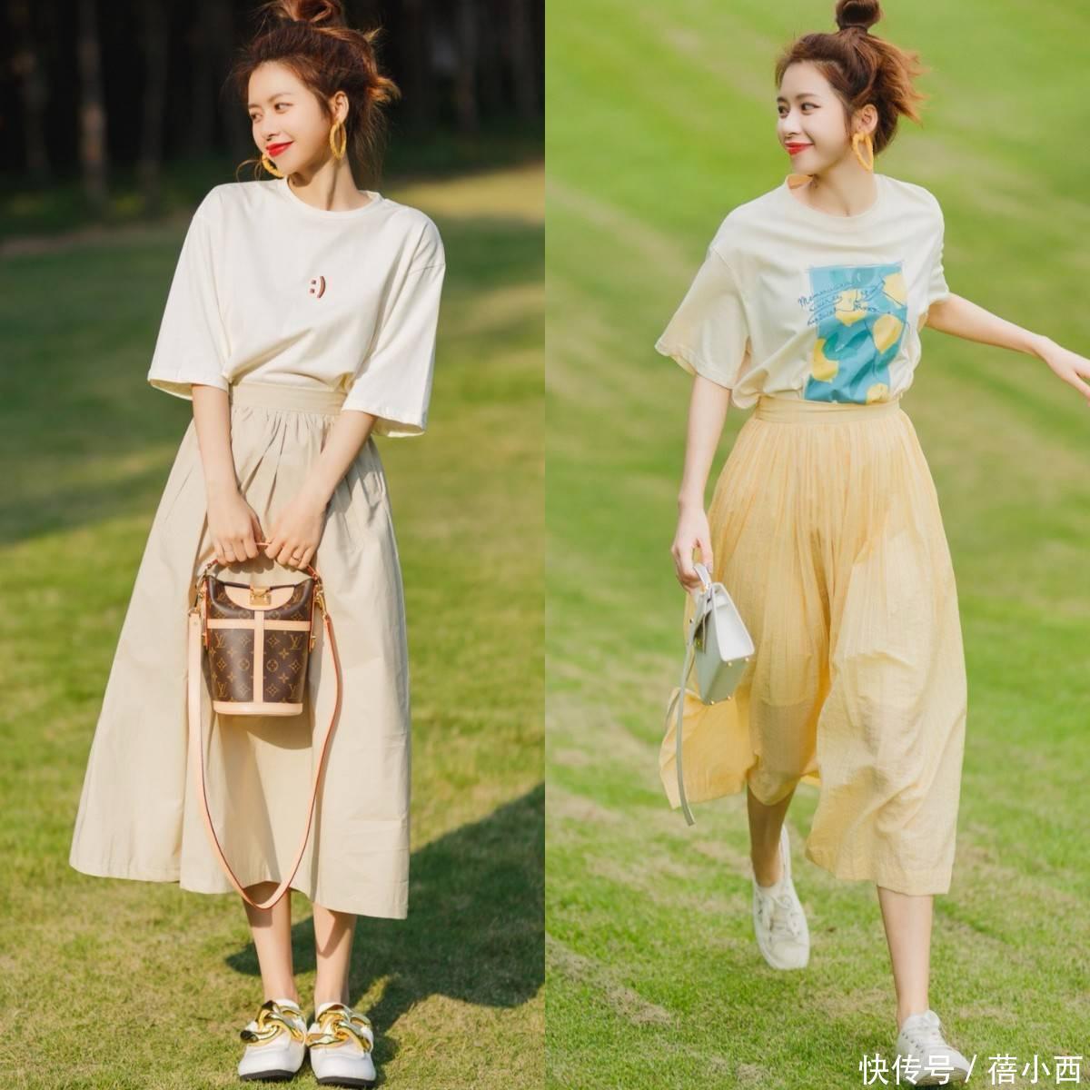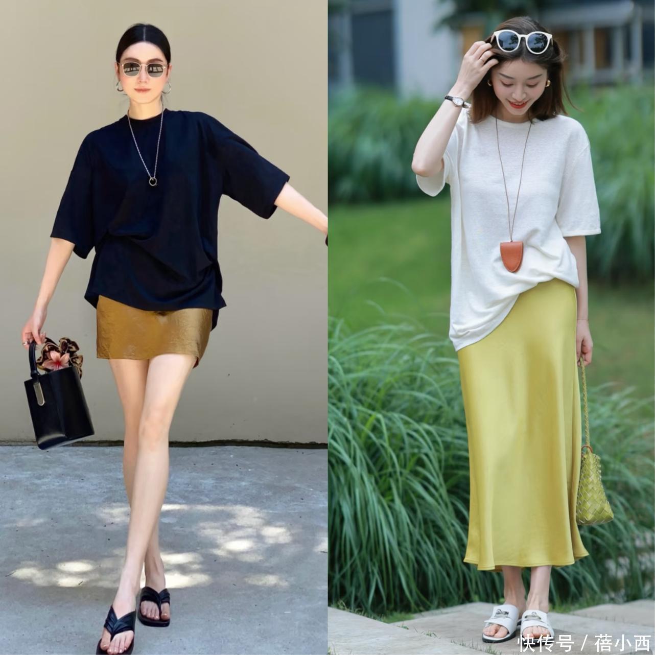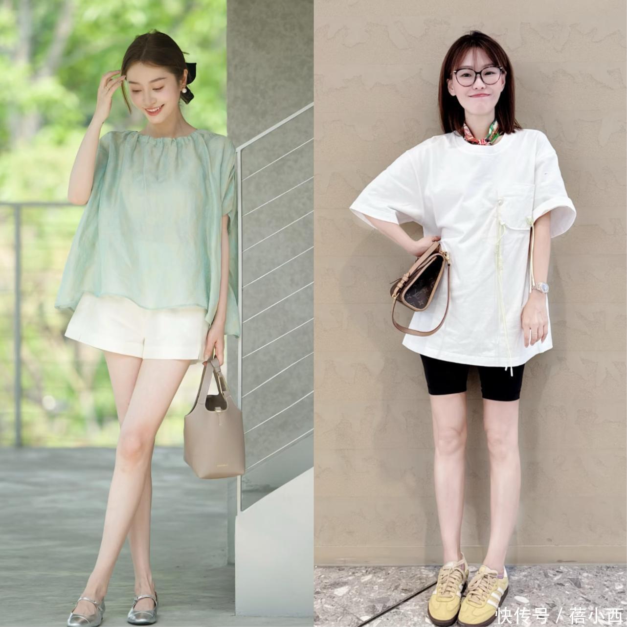 夏天谁没有几件T恤?但很多人以前总爱买紧身的,觉得那样显身材,结果一出汗就贴在身上,肚子上的肉看得清清楚楚。换成大号T恤,才算明白什么叫舒服。选的时候注意别太长,到大腿中间就够了,太长了压个子;领口也别太大,不然弯腰的时候总担心走光,小方领、圆领就挺好,看着清爽。